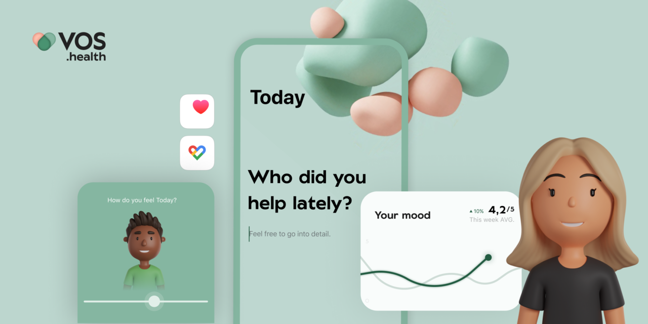 VOS.health je aplikace s globální ambicí založená na pravidelné sebereflexi uživatele, díky které pomáhá s prevencí duševních problémů. Sebereflexe prokazatelně snižuje pravděpodobnost vzniku deprese a úzkostí. Aplikace, za jejímž vývojem stojí české studio Qusion, dokáže zaznamenávat náladu a vizualizovat ji tak, aby bylo pro člověka co nejsnazší rychle porozumět těmto informacím. Spojuje a interpretuje data z dalších aplikací jako Apple Health či Google Fit a agreguje jiná data, která ovlivňují zdraví – například počasí. Umí také zasílat autonomní adresné intervence a v nejbližší době i personalizovaná doporučení pro zlepšení duševní pohody.