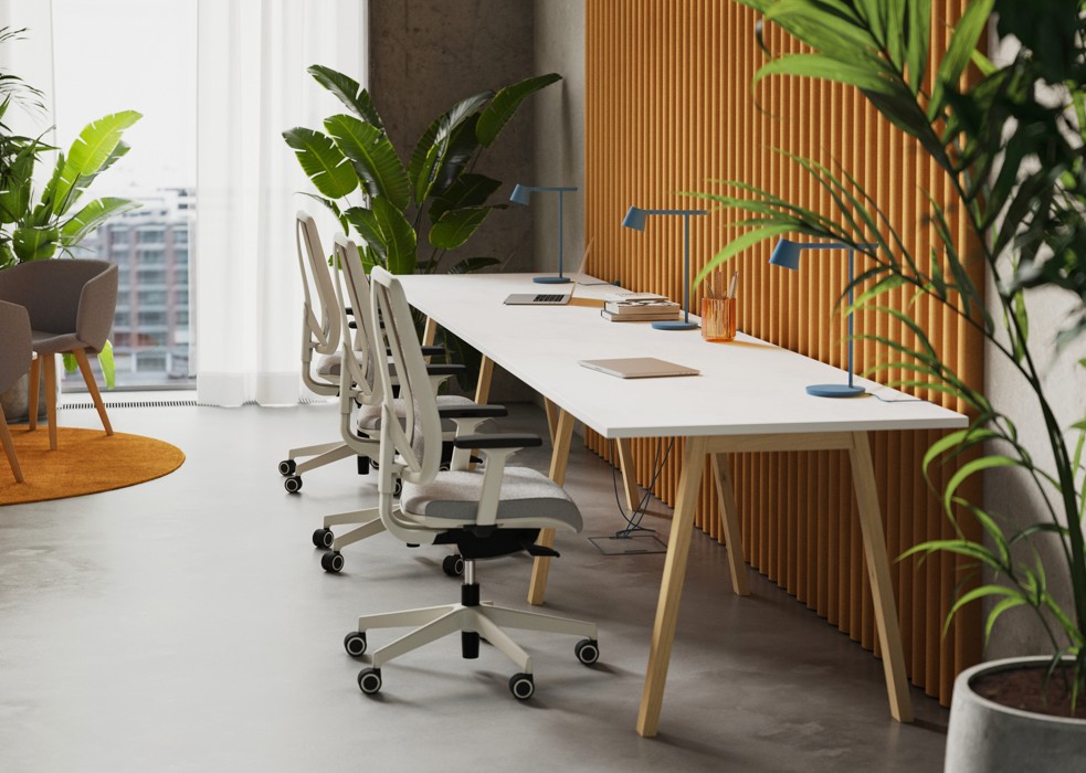 Kancelářská židle Muuna se hodí do jakéhokoliv interiéru. Čalounění nabízí širokou škálu barev, což ještě zvyšuje její schopnost adaptovat se. Na rozdíl od jiných kancelářských židlí nejsou na první pohled vidět žádné ovládací prvky. Pečlivě začalouněná židle je totiž vybavena SELF mechanikou, která všechno nastavení připraví sama.