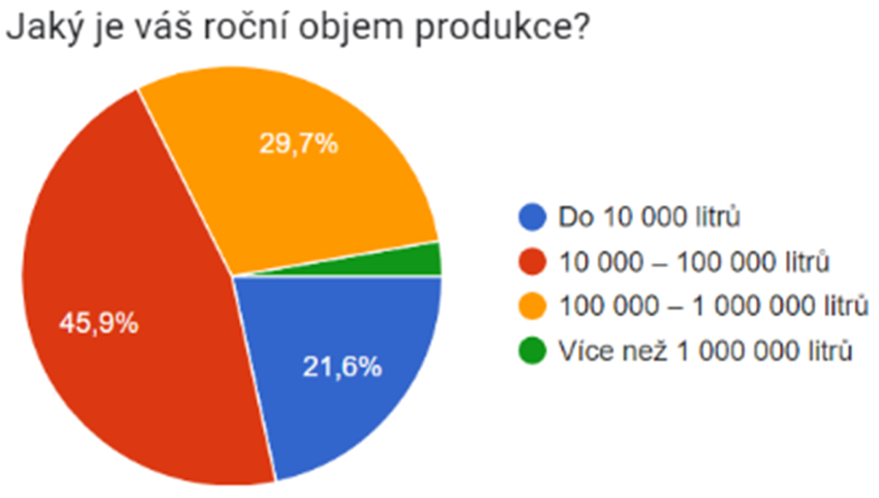 Dotazník vyplnilo 40 vinařů a vinohradníků napříč Českou republikou. Více než 80 % z nich se věnuje pěstitelství i produkci, a to převážně té domácí. Dvě třetiny z nich (67,5 %) tvoří menší podnikatelé s ročním objemem produkce do 100 tisíc litrů.