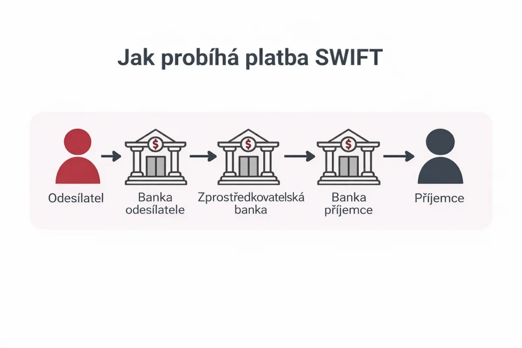 Tento proces připomíná letecký spoj s přestupy. Peníze mohou projít přes několik bank, než dorazí do cíle.