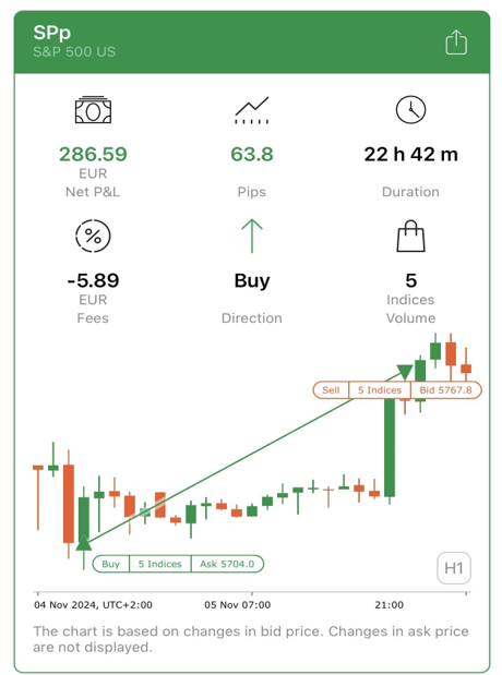 Minulý týden jsem zadal jen dva obchody, oba však byly extrémně úspěšné. Pomocí dvou spekulací na růst indexu S&P 500 jsem si přišel na téměř 1100 EUR. Průzkumu voleb v USA jsem věnoval mnoho času a úspěšné obchody tak beru jako pomyslnou výplatu za odvedenou práci. Do obou obchodů jsem přitom vstoupil ještě před samotnými volbami. Výsledek voleb se mi nakonec podařilo odhadnout naprosto dokonale. Výrazně vyšší šance na zvolení jsem totiž dával Donaldu Trumpovi.